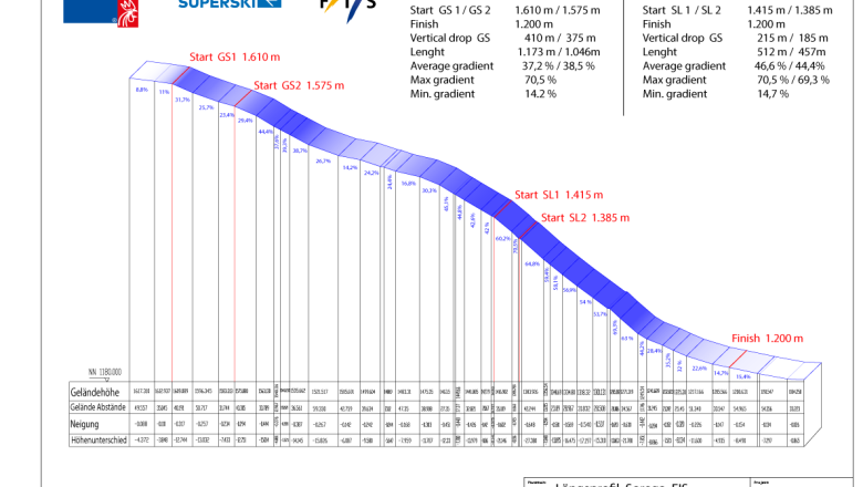 Starts auf Quote: GS1 1605 m GS2 1575 m SL1 1415 m SL2 1385 m